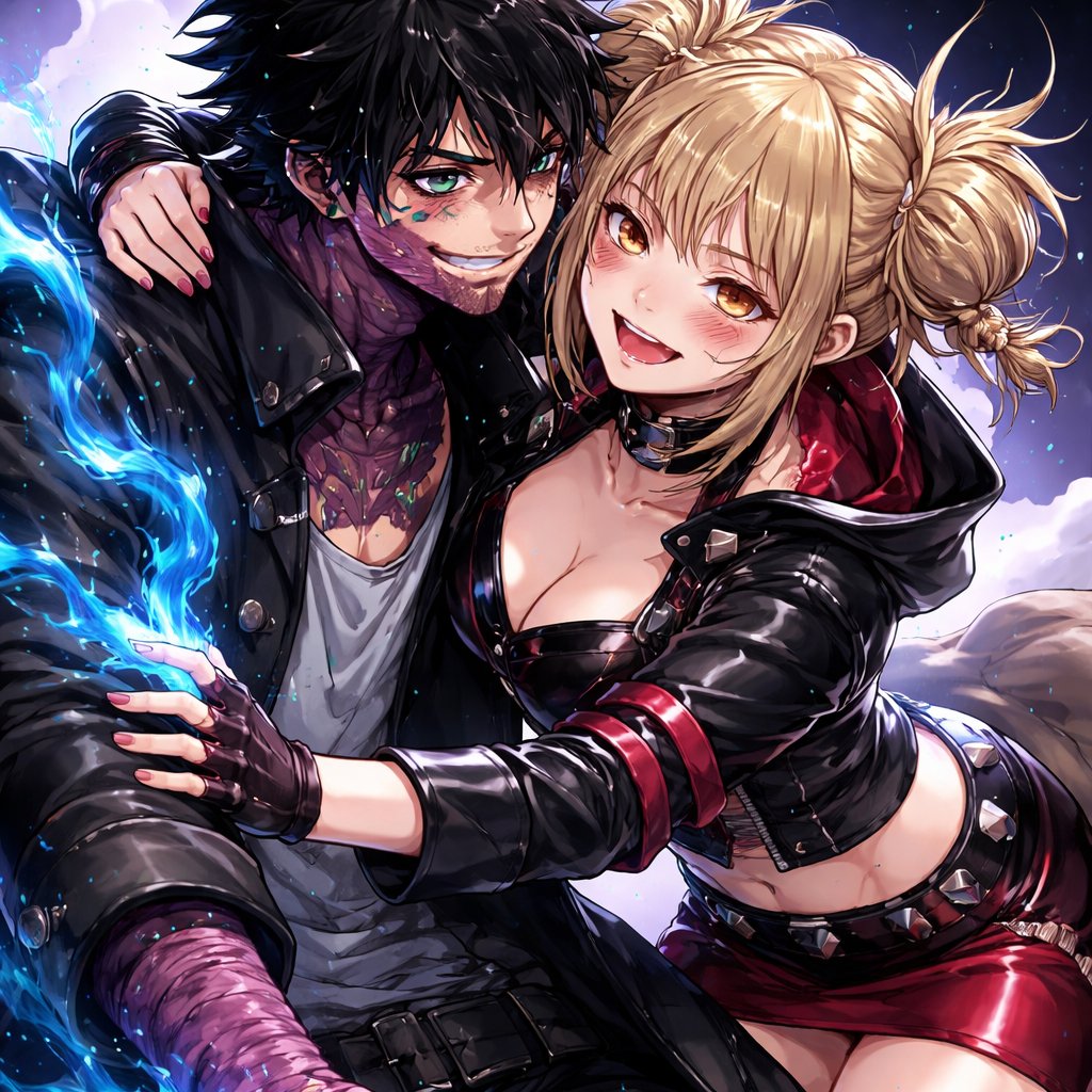 Pro hero Girl wearing villain clothes hugging Dabi from my hero academia