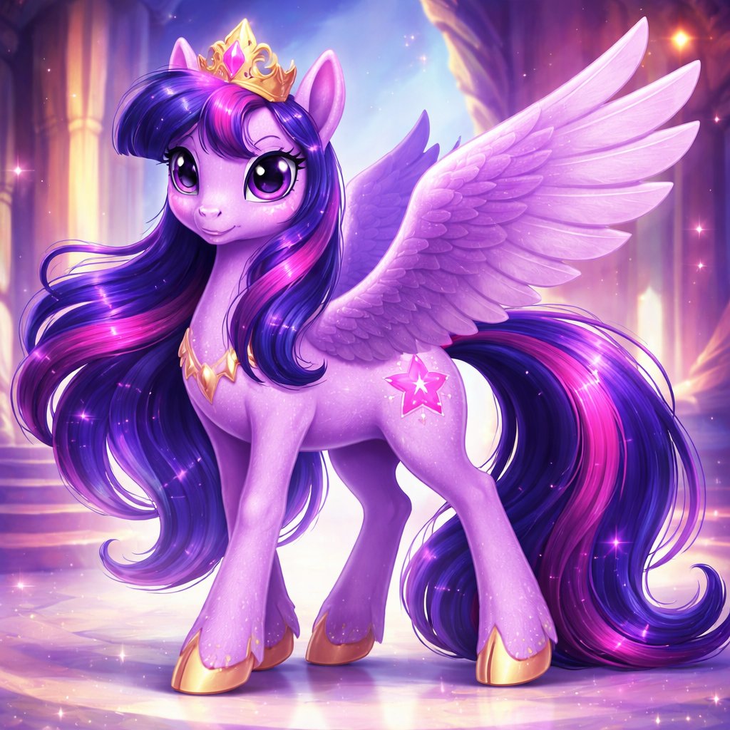 A lavender my Little Pony with a pink mane and tail and a glowing cutie Mark
