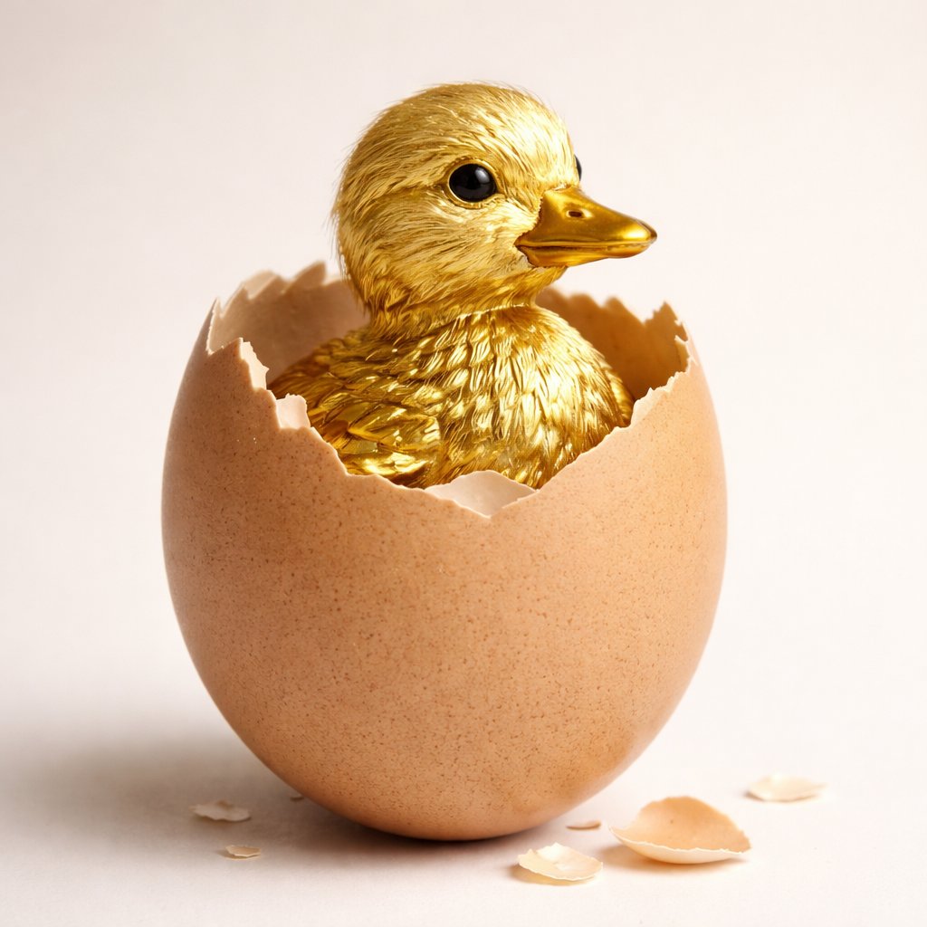 A golden duck in a normal colored egg