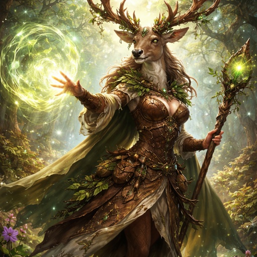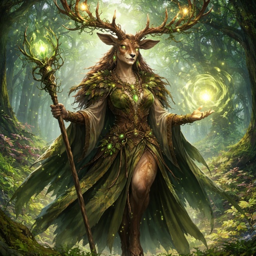 A female Firbolg (deer-folk) Druid