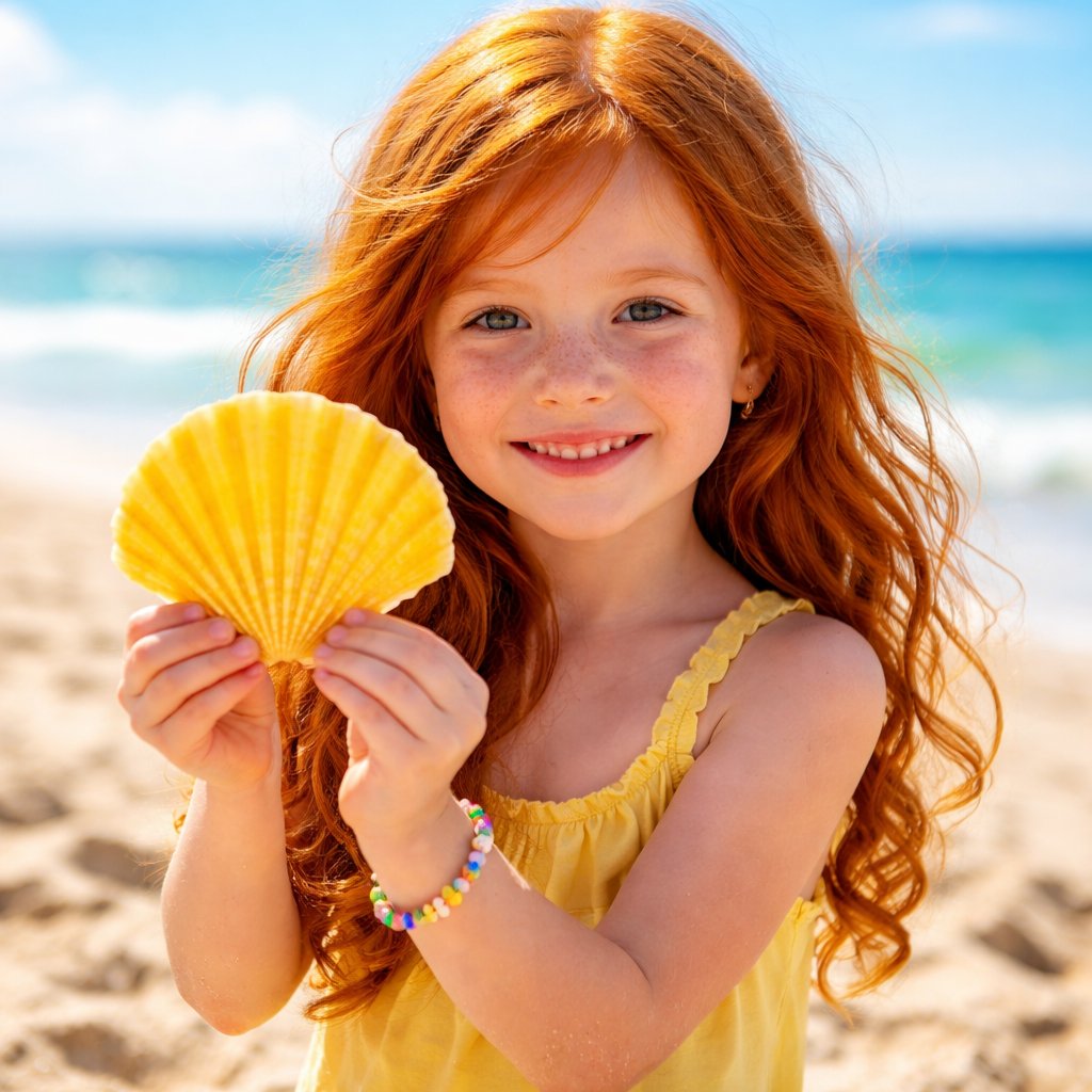 A red haired girl at the beach
