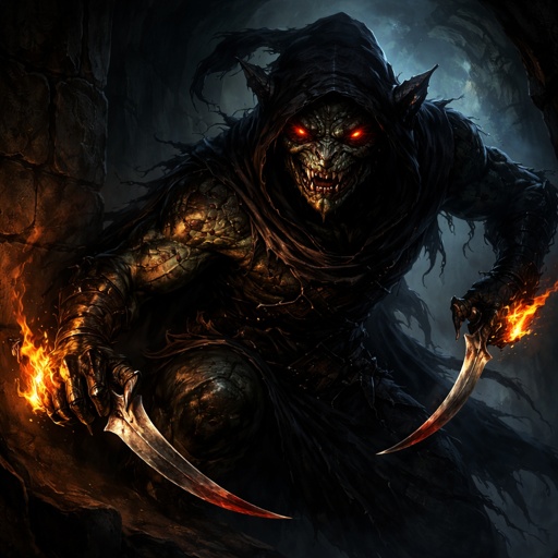 Half troll mixed with dragon blood sneaky assassin and has fire power