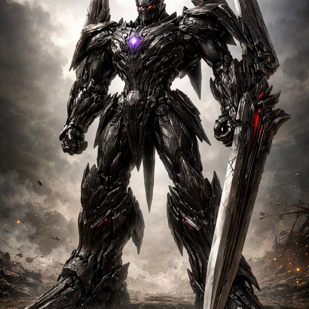 A giant black decepticon who transforms into a sword, in his bipedal form