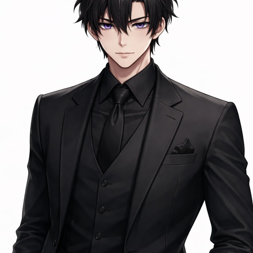 Young man with black hair and purple eyes in a three piece suit