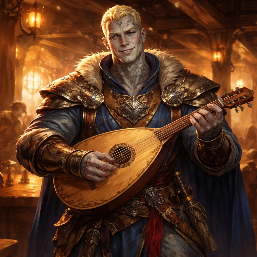 Larissa is a teething bard with a sage background. She has medium armor uses a short sword. She’s about 5 foot 10 has bl...