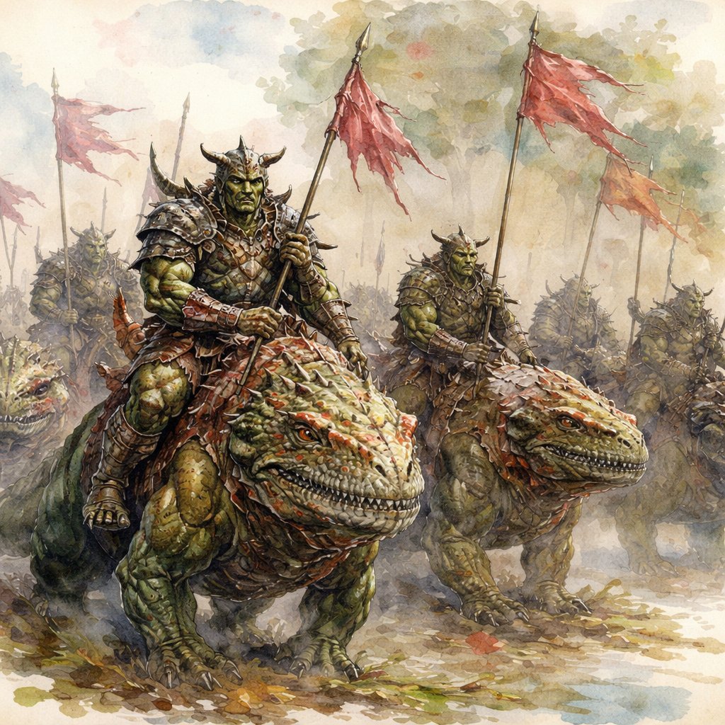 A group of orc lizard riders in an army