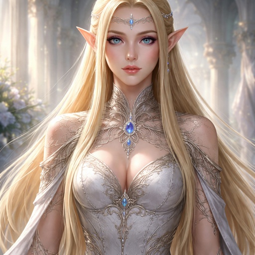 Noble high elf female with hair like Legolas and blue and purple eyes