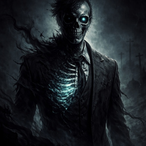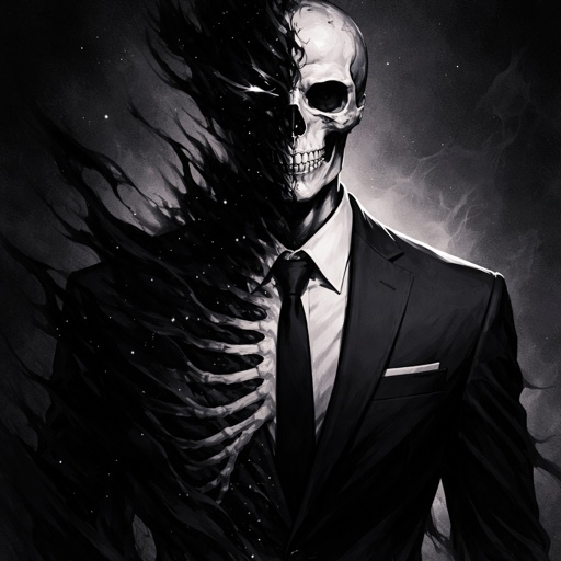 Half void person and skeleton with a suit