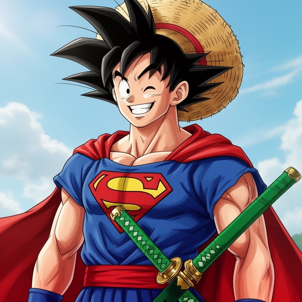 Goku and Superman zoro and luffy mixed together