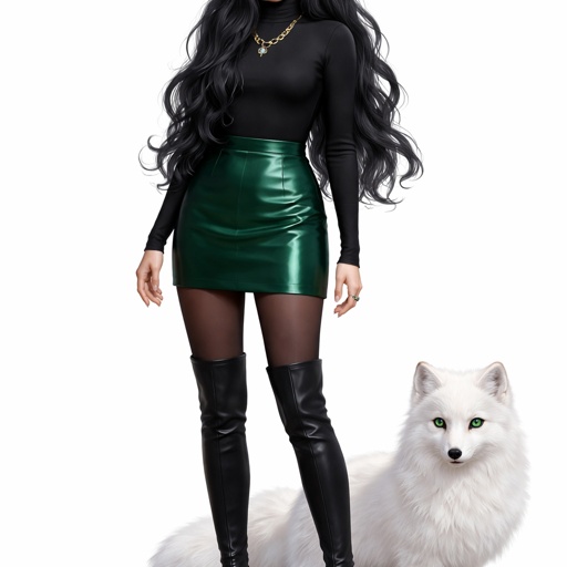 A teenager girl sitting with long black hair and grey eyes. Her hair is set in soft waves resting just above her but. He...