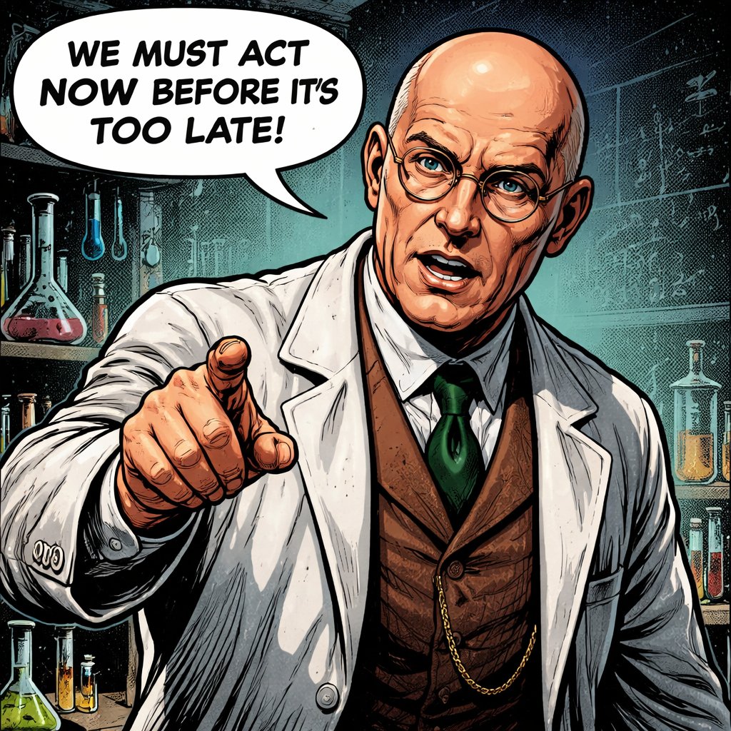 Refined realistic, no caricature a bald man who looks like a scientist is speaking His costume is very old-fashioned
