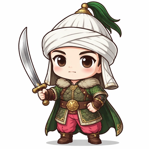 Turk ancient soldier with sword similar like mongol , green cavlar white traditional cap and pink pants