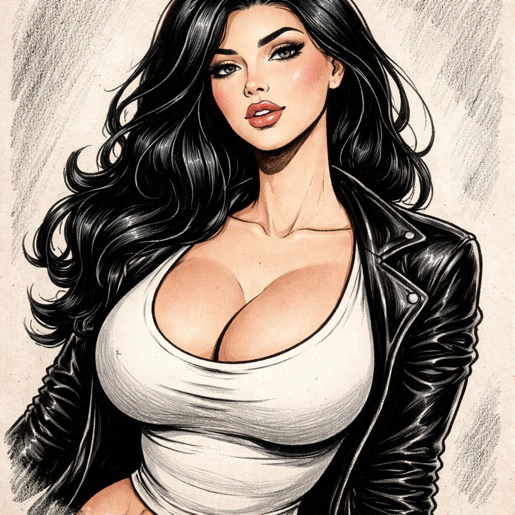 No speech, memos charcoal, drawing on paper of a woman with big breasts