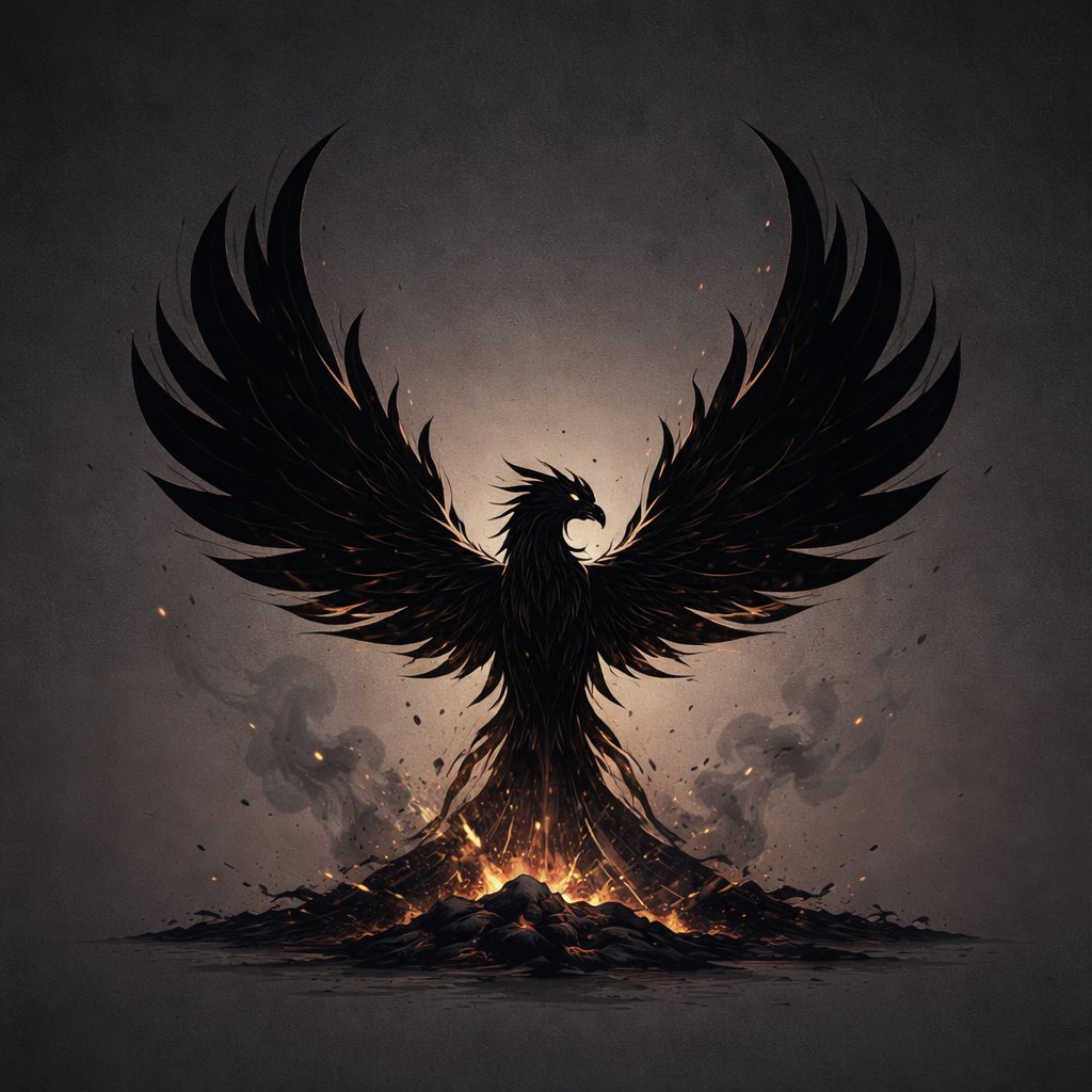 Sigil: A blackened phoenix rising from a pile of ash, wings jagged like flames.