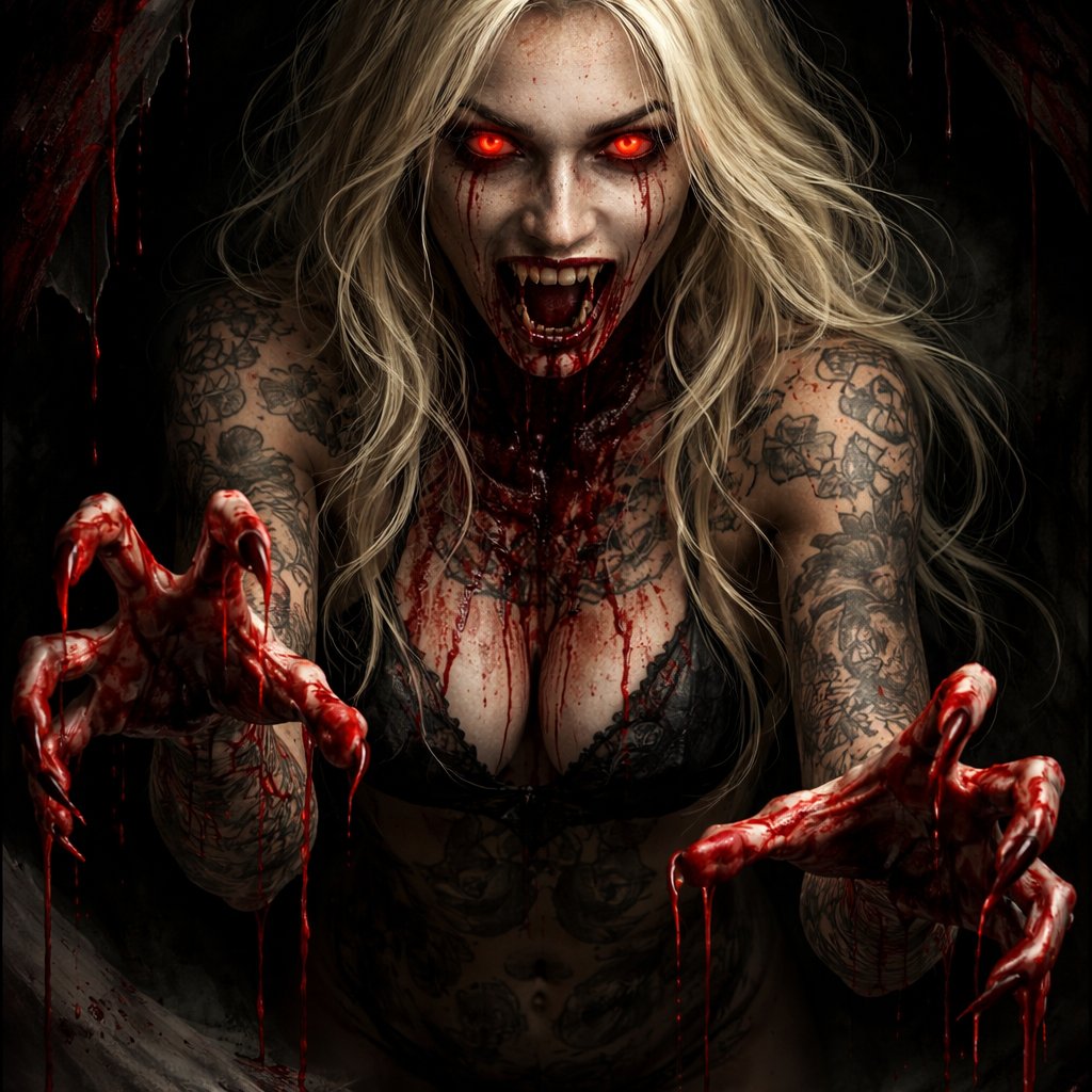 A gorgeous blonde girl with big boobs and lots of tattoos