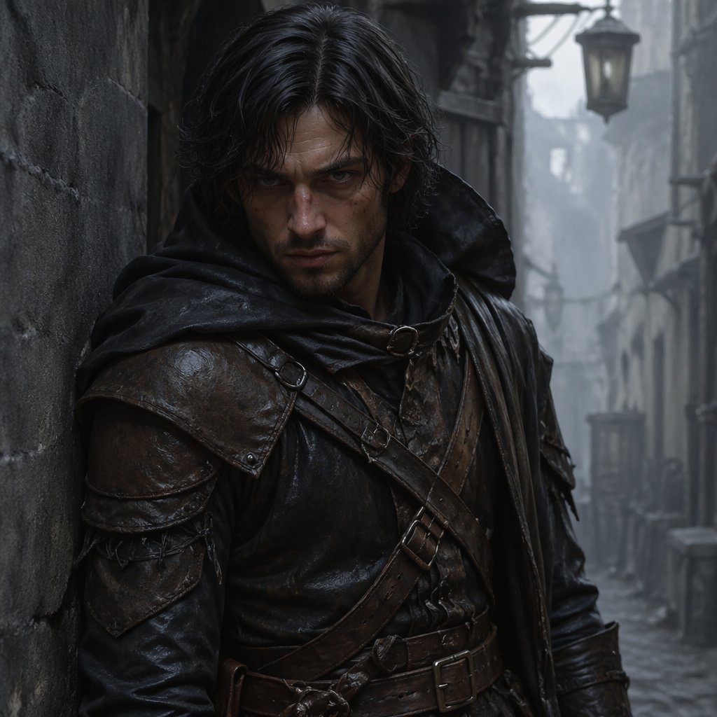 An dnd oc medium height 120 lbs rogue thief modest lives on the streets short dark brown hair green eyes olive skin 20 y...