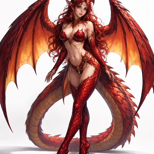 A hot girl mixed with a red dragon but you can see her full body