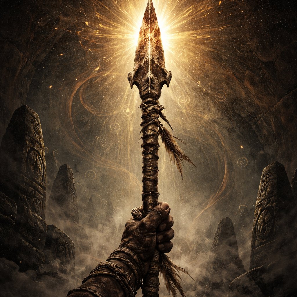 une arme céleste unique, forgée dans le creuset des âges et des dimensions : l’Égide d’Éon. L’Égide d’Éon est une lance d’une beauté surnaturelle, dont le manche est sculpté dans un métal inconnu, brillant comme mille étoiles. Sa pointe est une lame d’énergie pure, capable de transpercer non seulement la matière, mais aussi le tissu même de l’espace-temps. Lorsque l’arme est brandie, elle émet un halo d’énergie cosmique, vibrant au rythme des éons passés et futurs. Son histoire légendaire commence lors de la convergence des temps, un événement où tous les êtres, connus et inconnus, de toutes les époques, furent rassemblés par une force mystérieuse. C’est alors qu’un forgeron divin, maître des dimensions, façonna l’Égide d’Éon en utilisant les fragments d’astres disparus et les éclats des réalités effondrées. L’arme fut donnée à un gardien élu, chargé de maintenir l’équilibre entre les mondes et de déchirer les anomalies temporelles menaçant l’existence. On raconte que l’Égide d’Éon peut ouvrir des portails vers des époques oubliées ou futures, mais aussi sceller des failles temporelles avant qu’elles ne détruisent la réalité. Son pouvoir est incommensurable, mais elle ne peut être maniée que par celui dont l’âme est en harmonie avec le flux du temps, un être capable de comprendre que chaque instant est à la fois un passé, un présent et un avenir. Cette arme céleste symbolise la maîtrise du temps et de l’espace, une légende gravée dans le cœur des univers mêlés. Petite précision il s’agit d’une lance tumulaire