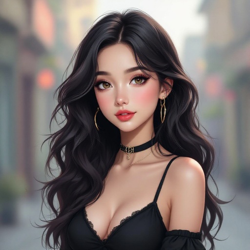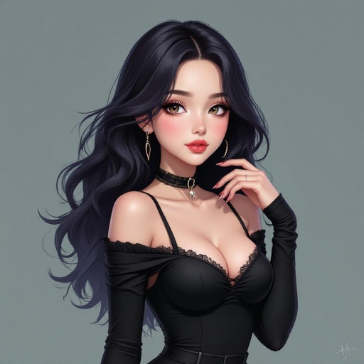 Create a beautiful adult BRATZ woman she has beautiful deep mocha radiant skin and plump lips. She is a little bit carto...