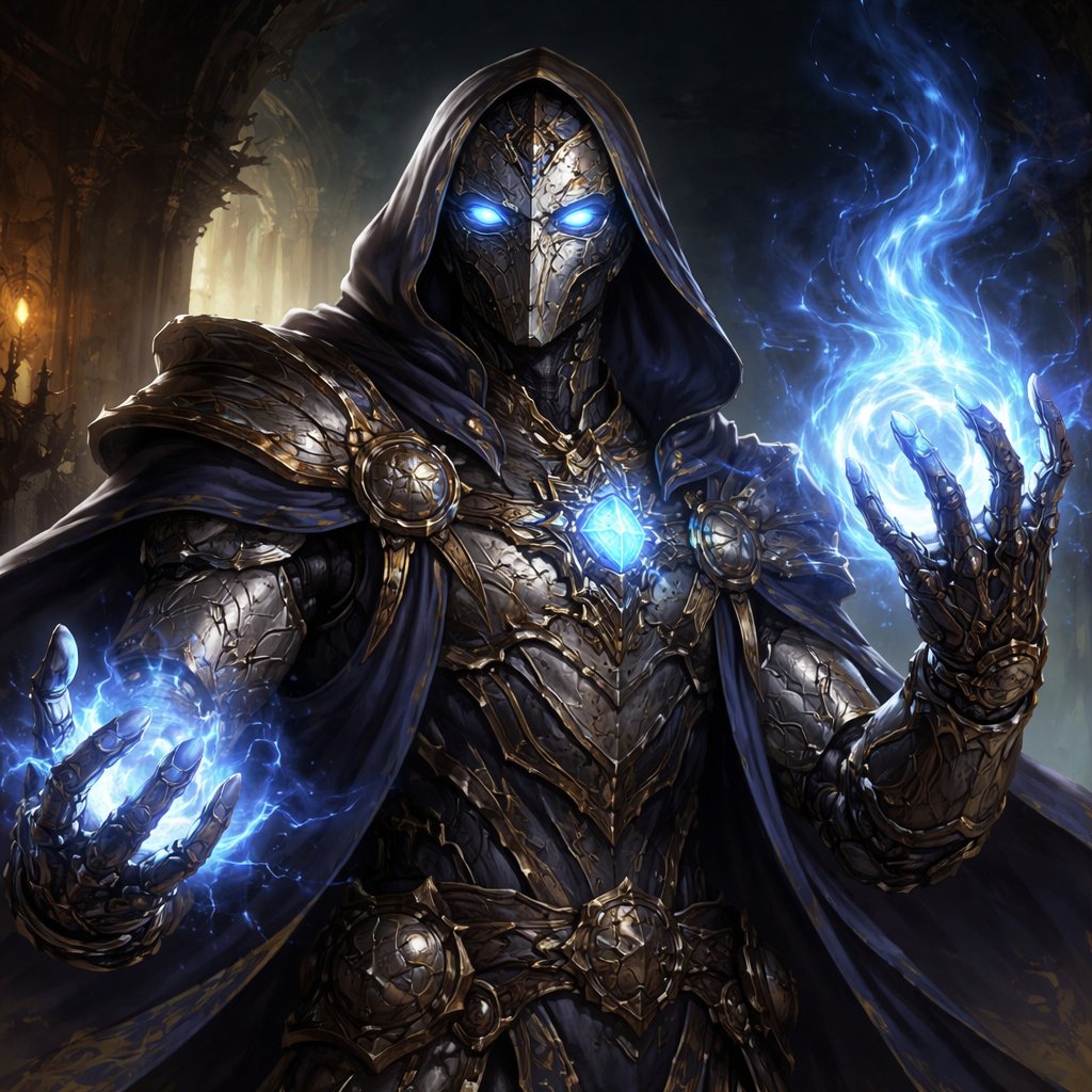A dnd sorcerer who is a war forged machine man. With eyes of hands of clock