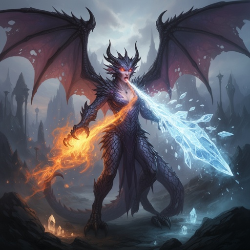 A monster holding a sword with beautiful carvings, and the monster is a girl and dragon