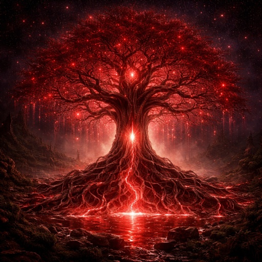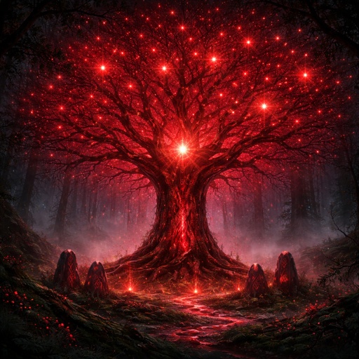 Blood red life tree with stars in it