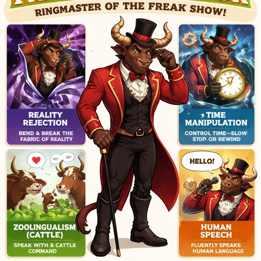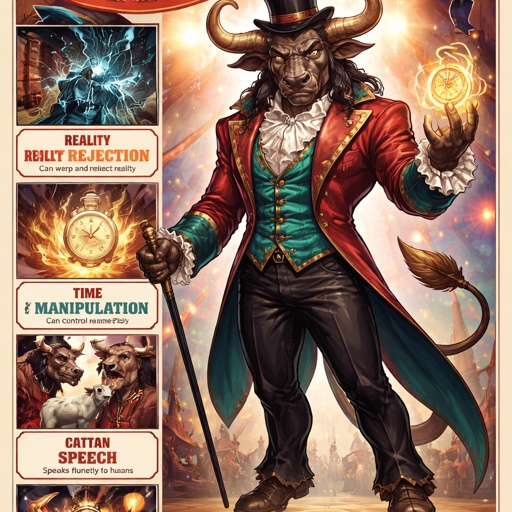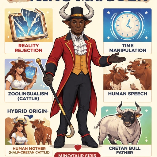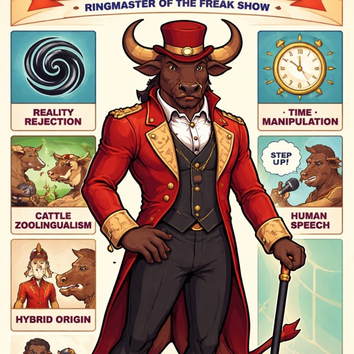 Minotaur with a well~proportioned figure and is Ringmaster of a Freak Show. That has a abilities like Reality Rejectio...