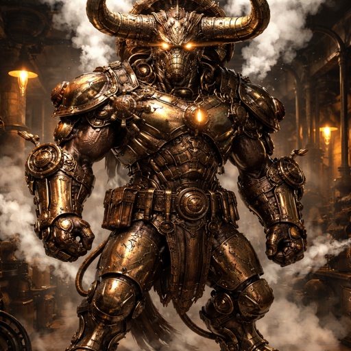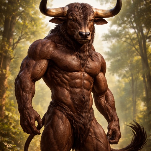 A male Minotaur that’s 6 1/2 feet tall and His Key Features are. Head looks like a mixture between Cretan bull and a hum...