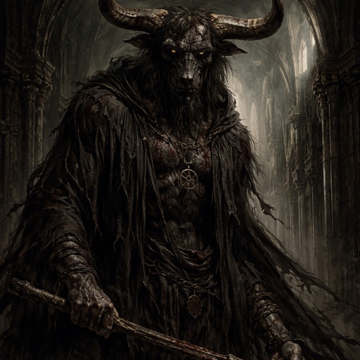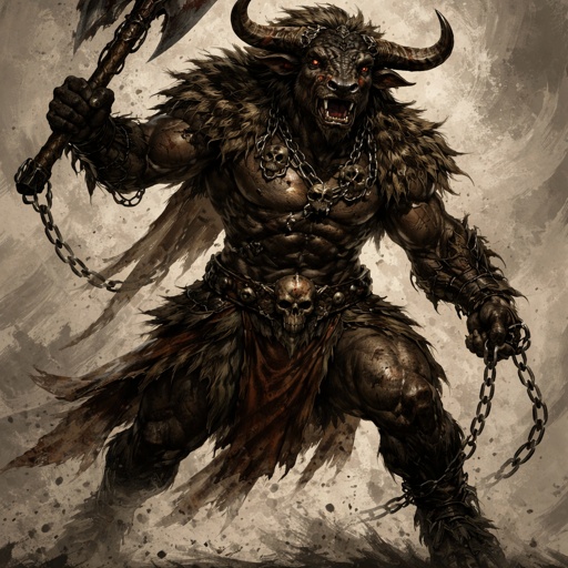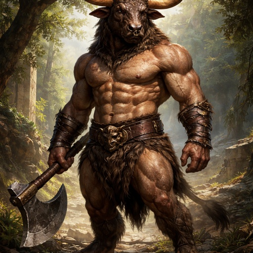 A male Minotaur that’s 6 1/2 feet tall and His Key Features are. Head looks like a cross between Cretan bull and a human...