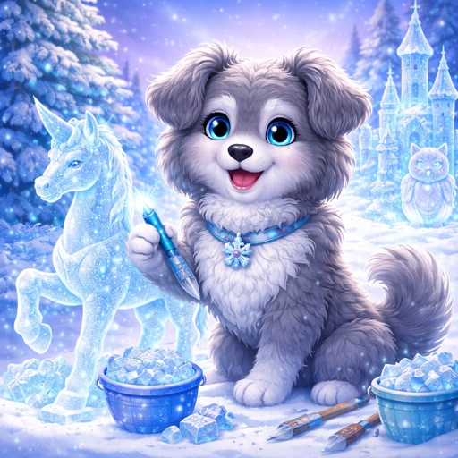 Snowflake is a grey dog and one of the smiling critters, she loves children and creative with ice. And loves children.