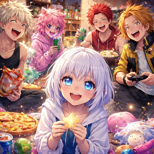 Girl with short white hair and royal blue eyes with white star shaped pupils and bakugo, Mina, kirishima, and Denki hang...